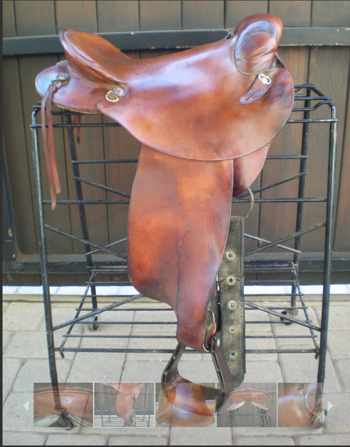 World war 1 officers saddle. High quality officers saddle (not cheaper South American version). I used this saddle for endurance racing (on my saddlebreds) and it was extremely comfortable for the horse and rider. The saddle always forced you center! The tree and leathers were replaced by Amish saddle makers in Pennsylvania and cost over $700. I recently had to put down my 23 year old horse from severe founder and we sold our horse farm. I am now selling my amazing endurance saddle. This saddle Came to my from a veteran endurance rider who introduced me to the sport and I used it during my years of competition. Everything should be in the pictures, I am asking $900 for it.