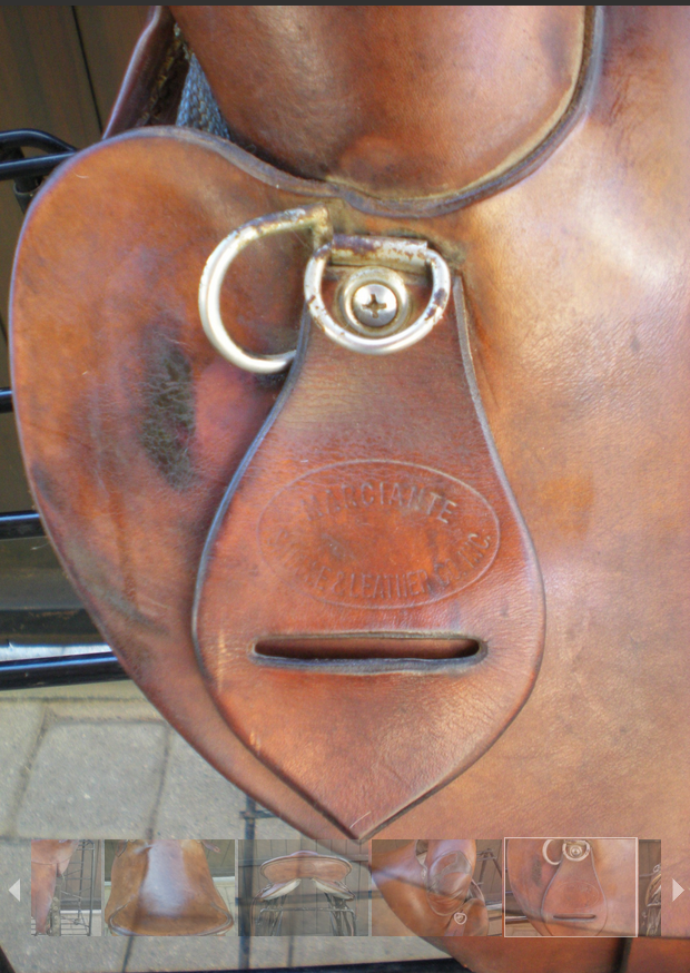 Rare #1136 Marciante Endurance Western Leather Saddle 15” Horse Tack Marciante saddles are no longer made and hard to find! Here is a nice, clean 15” Marciante endurance saddle. The width is semi-quarter horse bars 7”. This saddle has been conditioned and ready to ride. The pommel has a leather tear but professionally fixed and will not come apart – its smoothed over and doesn’t affect the purpose of a saddle. It comes with the original off billet. While cleaning I see that the brass rivet holes are oxidizing. They need brass cleaner to get that off. The off billet can easily be replaced I just want you to have the original part. These saddles are not heavy – about 23 lbs and easy to handle. Well balanced saddle with lots of life left in it!! Zelle, Venmo, Paypal $450 + shipping