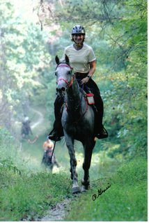 Background info: I grew up riding NATRC as a kid, moved to Clemson for college and met Faith Connelly, got my first horse from her when I was 21 and tried some endurance, LOVED it, got married and stayed in the area with my own farm but my riding horses still live at Faith's because she is backed up to Clemson Univ property where we have 25 miles worth of trail ranging from flats for speed work to tight single track technical trails with some hills(No trailering to condition unless we want to). I have ridden endurance since 1996 and got serious in 2001. I have 3 children ages 10, 7, and 2 and an awesome husband that lets me go off while he keeps the kids and critters at home. God Bless Him!!